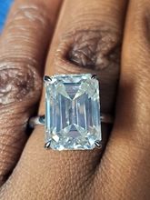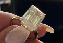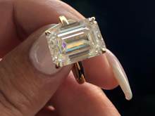 This ‘Elena’ 10 Carat Emerald Cut Solitaire Moissanite Ring is perfect for Diamond Lovers!