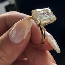 Size Info: 10 Carat Emerald Cut Solitaire Moissanite Hidden Halo Ring