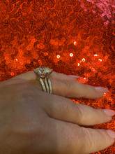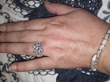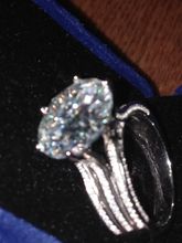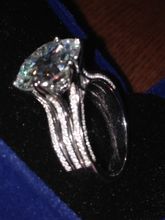Just a chic ring with an incomparable stone that plays in the sun with a wonderful overflow. The stone Test for moissanite passed. Order came quickly. The ring came with a velor bag and a certificate for Stone. Very satisfied with the purchase. Thank you store! Prosperity to the store!
