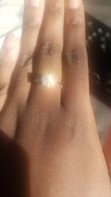 I was experimenting with a 1 carat for first time.I had never wore a round cut over 0.5 cts. But because of the refined thin setting and how the stone was set before shipping, it is unexpectedly & surprisingly very flattering and elegant. The stone is neither too high or too deep. Can be worn with every ring stack but I personally favour wearing it alone. It dramatically emphasizes the stone's size that way against my small bone structure. I can't stop staring at my finger! It makes such a statement on its own with it's size and crazy fire. These photos were taking at noon inside with the sunlight from large windows hit, the stone. These photos are unedited without flash. Truly unreal, the photos don't capture the sparkle, its dramatic in direct sunsunlight. In other settings, it looks natural like real diamond almost glowing in brilliance. True to size. Comes with GRA certificate.