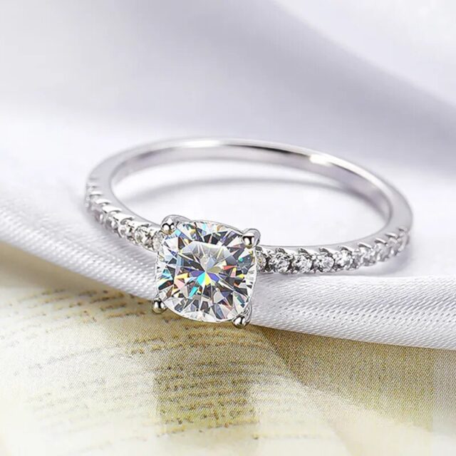 - Item Type: Cushion Cut Moissanite 4 Prong Ring with Half Pave Band