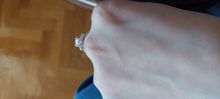 The ring is really very beautiful and qualitatively executed, fully corresponds to the description. Exact dimensional grid (8-on Russian 18.5). Magnificent laconic design. Successfully matched the size of moissanite: 7 × 8, looks very organic. Crushed ice cushion is a beautiful, sparkling! Thank you! PS. Photo in different lighting.