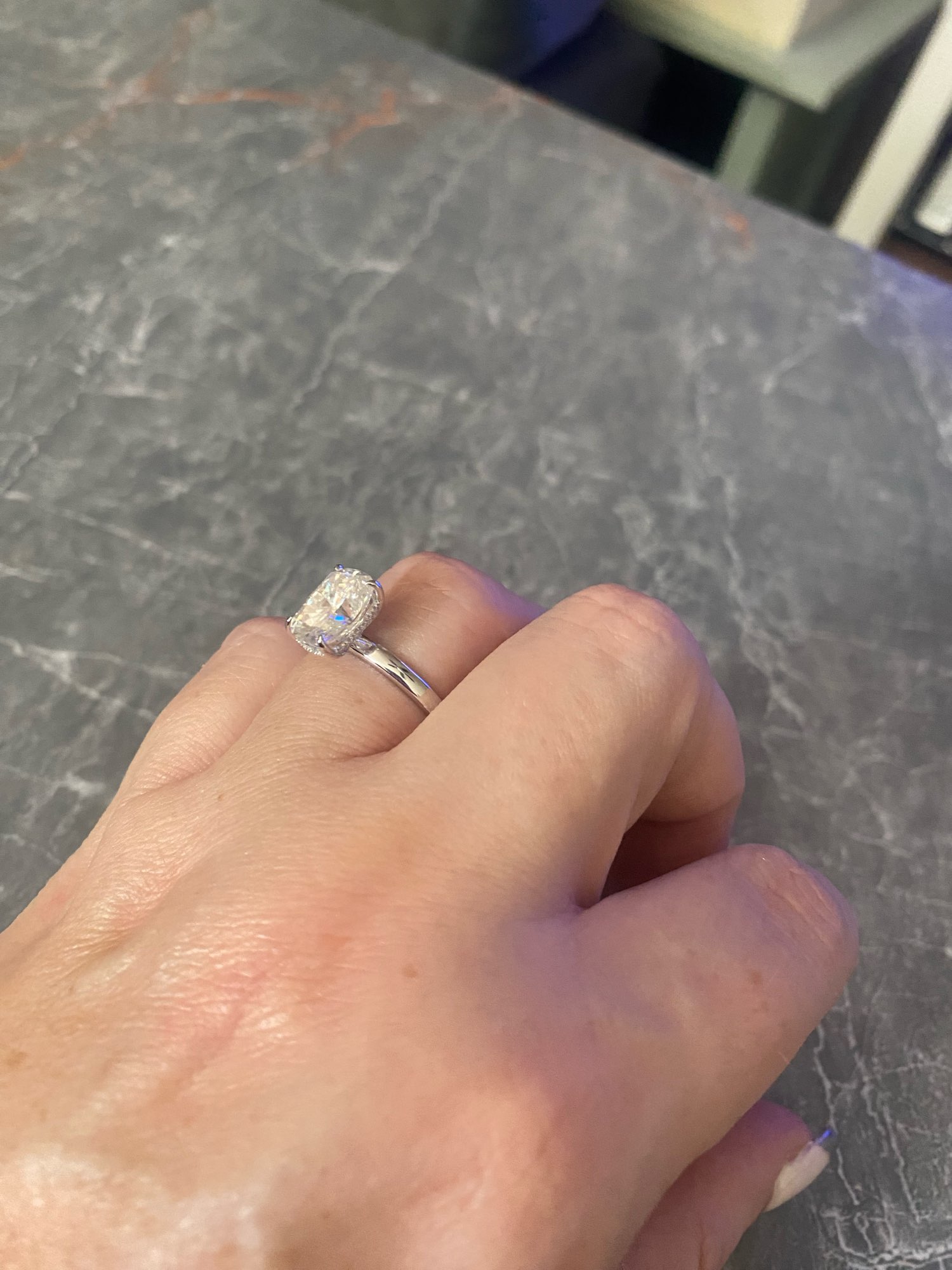 - Item Type: Elongated Cushion Cut Crushed Ice Moissanite Hidden Halo Ring