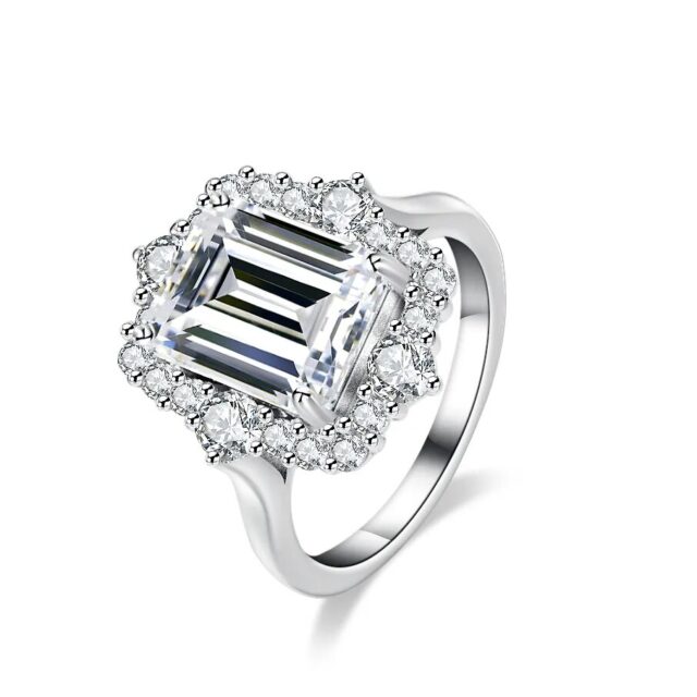 Package Includes: Emerald Cut Moissanite Art Deco Halo Ring Emerald Cut Moissanite Art Deco Halo Ring with Pave Band