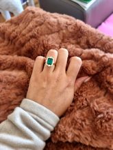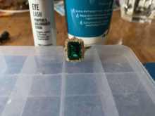 Gorgeous! I love this ring! I had another silver and faux-emerald ring that has a very large center stone. It's very cocktail/costume. I bought this one to match a silver and faux-emerald necklace that I love and it was a perfect match. It is just the right size, not too big or too small. Though it probably wouldn't exactly pass for genuine emerald, it still looks like nice jewelry. It has a lovely sparkle to it and is one of my favorite pieces.