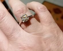 This ring is amazing. Super high quality, definitely good quality moissanite, not CZ. The best moissanite I’ve purchased.