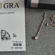 This is the second necklace I bought from this store. I bought the same one last time too. I liked it so much I bought one for my niece for Christmas. It also tested positive for diamond on my diamond tester just like the last one I received. I also received gra certificate. Also even though the chain is dainty I would say it is still pretty strong. I forgot I was wearing a necklace the other day and I accidentally got my hand stuck on my necklace and the chain didn’t break. I pulled on it pretty hard too. I am actually kind of surprised the chain survived that. Even though, I am still probably going to get a backup chain just in case. Great buy for the money!!