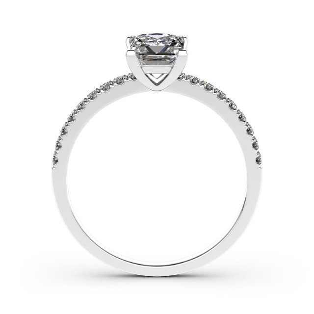 Princess Cut Moissanite Pave Band Solitaire Ring