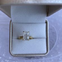 (Above showcasing the ‘Radhika’ 4 Carat Radiant Cut Crushed Ice Moissanite Hidden Halo Ring)
