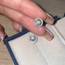 These ‘Rosemary’ Moissanite Round Halo Stud Earrings are perfect for Diamond Lovers!