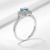 (Above showcasing the Bluebell Blue Round Moissanite Double Halo Ring with Split Shank Pave Band)