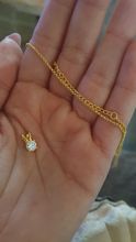 So dainty and beautiful. Reminds me of the high end diamonds by the yard style like the one from Tiffany that usually costs $1500+. Came with the certificate as well. I didn't want the bigger sizes because I don't want it to look fake so the tiny 0.1 pendant with the choker necklace is literally so classy, so beautiful and makes me feel like I'm Meghan Markle or something haha. Shipped so fast as well. 110% satisfaction, thank you so much!