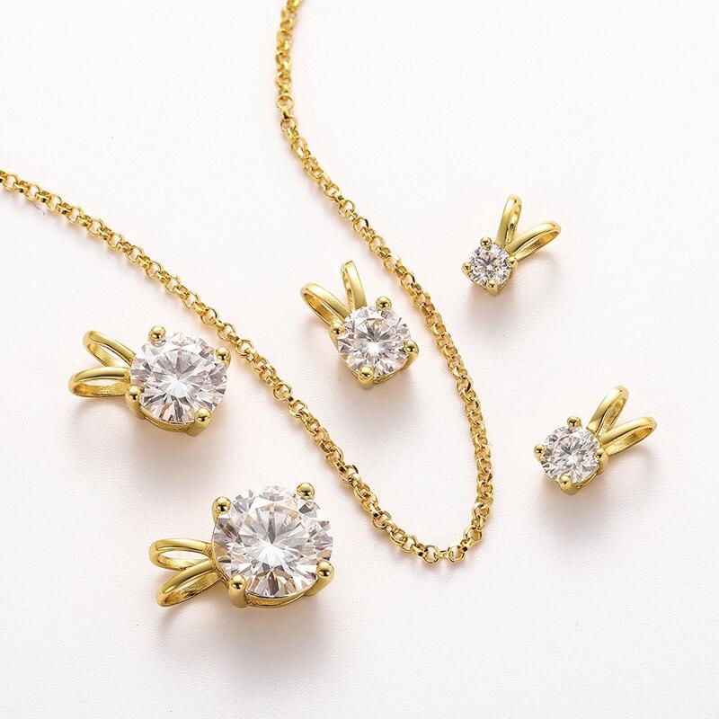 (Above showcasing the ‘Blaine’ Round Moissanite Double Link Pendant in Yellow Gold Color)