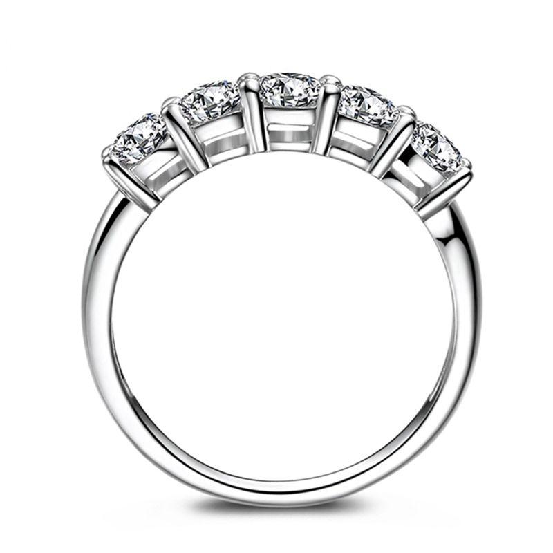 5 stones of 4mm, sparkle and shine, on the hand look beautiful, you can wear one ring, and paired with another ring. 925 sterling silver is plated with white gold, will not fade. Fashionable and stylish. The Stones all passed a positive test. Delivery about three weeks. Thank you.