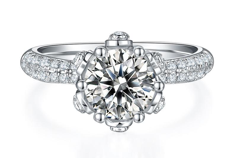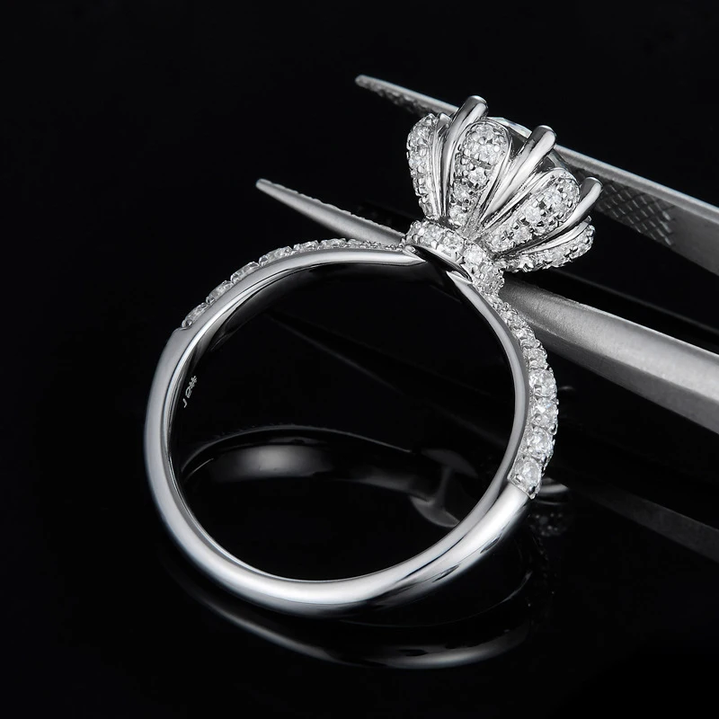 - Item Type: Round Moissanite Rosebud Ring with 3D Half Pave Band