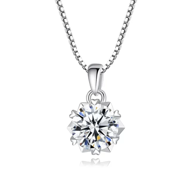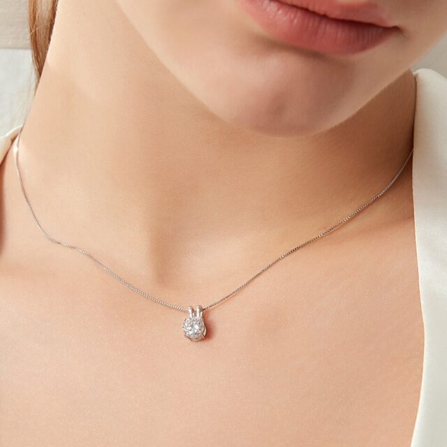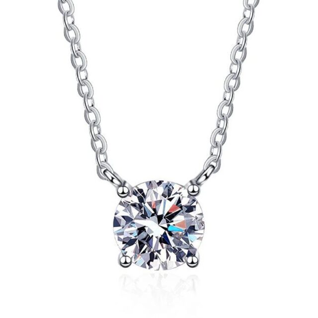 • 1 x Pendant, 1 x Chain – 1 Carat Round Solitaire Moissanite Pendant with Chain
